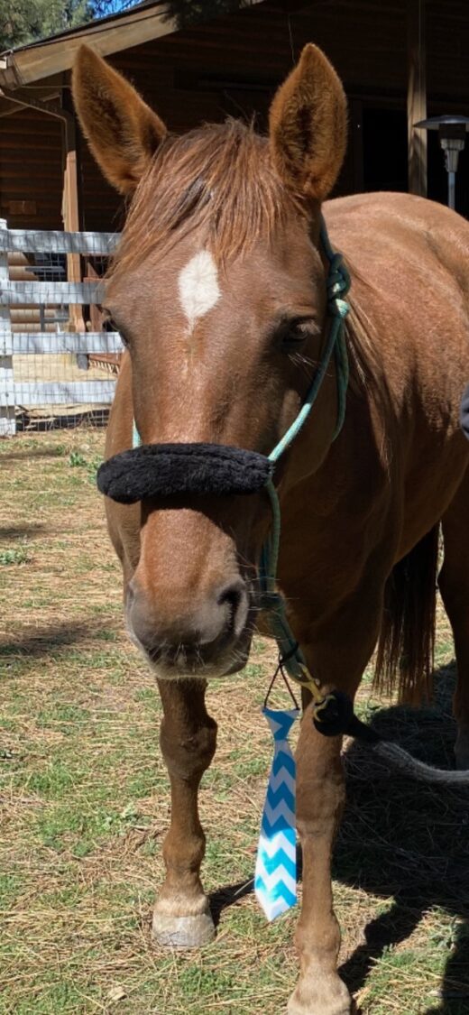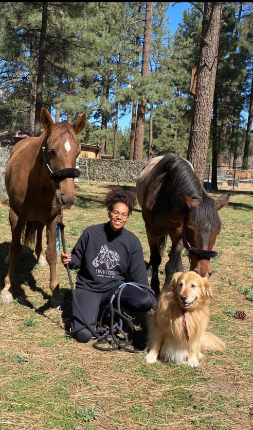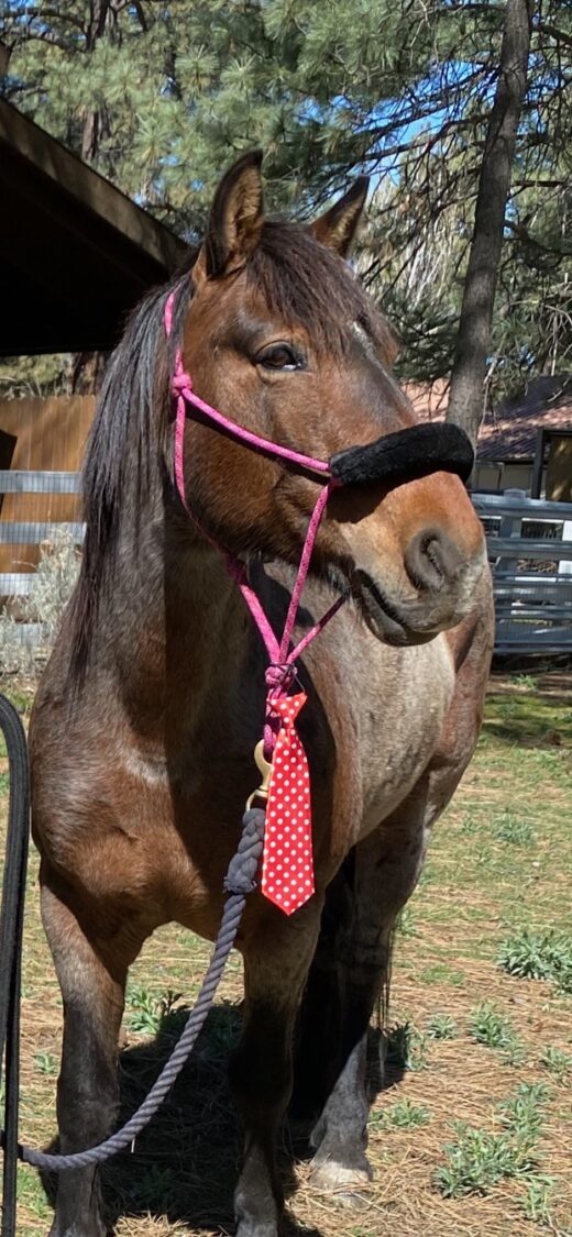 Goodlett’s horses are both rescued Mustangs from the Little Owyhee Herd Management Land located in Nevada. The land stretches hundreds of thousands of acres and is managed by the Bureau of Land Management. It is made up of descendants of ranch horses that were released or escaped to the area. Makani is an 11-year-old riding horse. Malana is an 8-year-old pack horse.